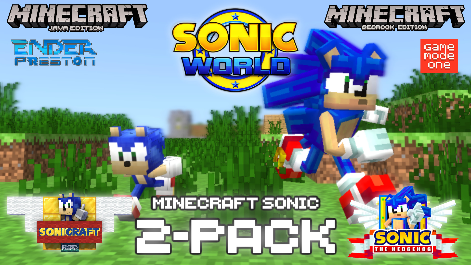 Play as the oversized Sonic from the official Minecraft Bedrock Edition DLC, or take the road less traveled and play as my realistically-sized Sonic from SoniCraft